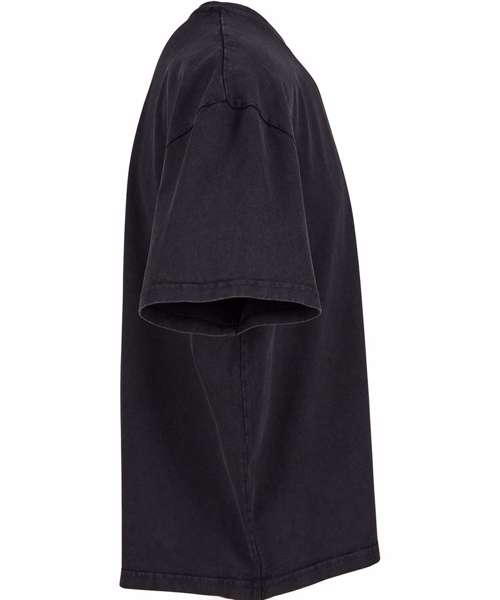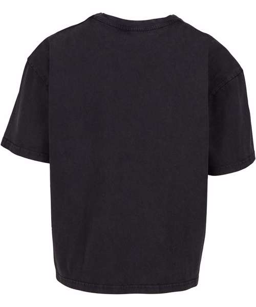 Oversized fit. Dropped shoulders. Shortened cut ends just below belt height. Crew neck. Garment-washed for a vintage look.